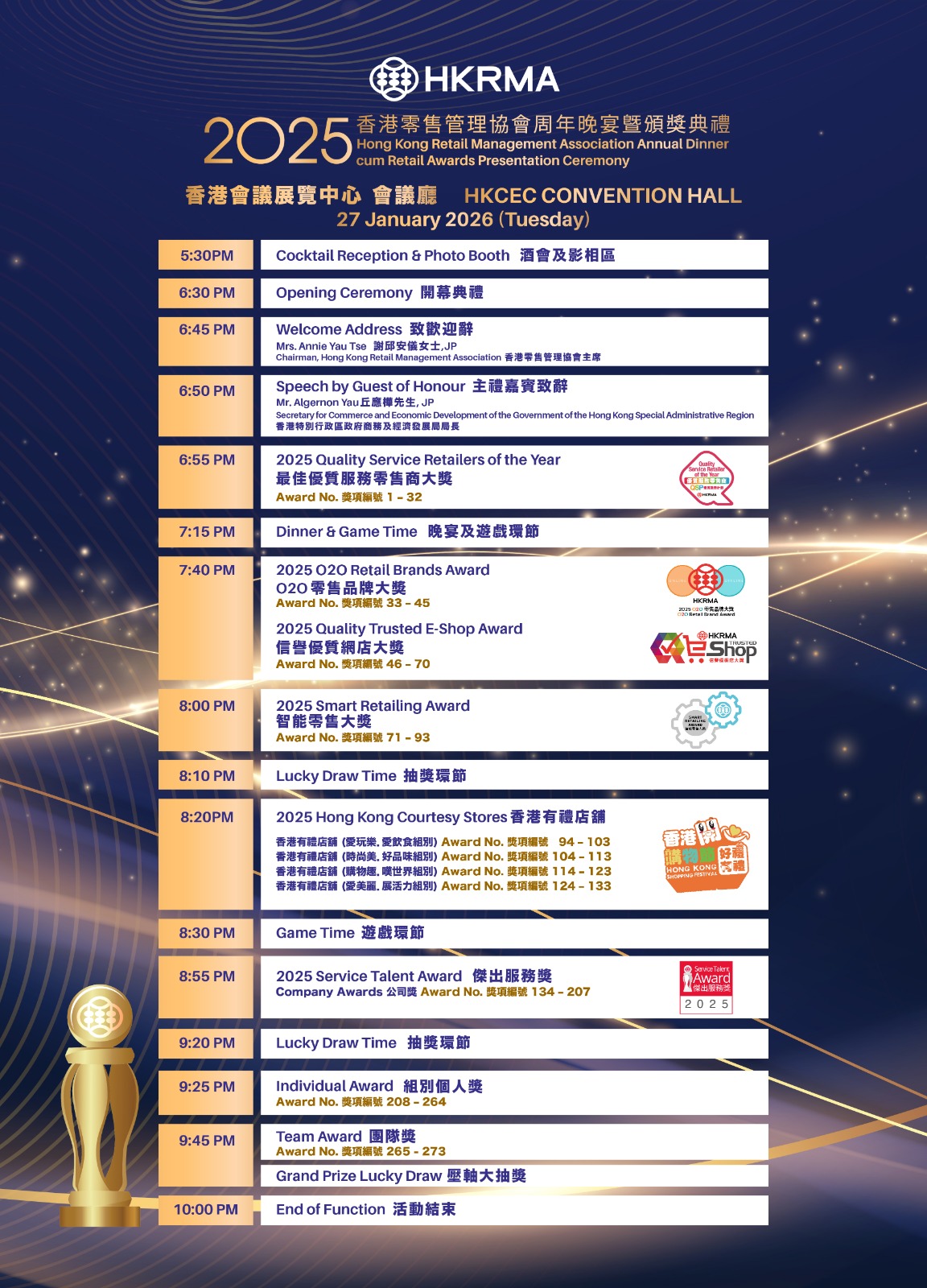 will be held at Hong Kong Convention and Exhibition Centre Convention Hall on 27 January, 2026 (Tuesday), with the presence of our honorable guest, Mr Algernon Yau, JP, Secretary for Commerce and Economic Development of the Government of the Hong Kong Special Administrative Region.